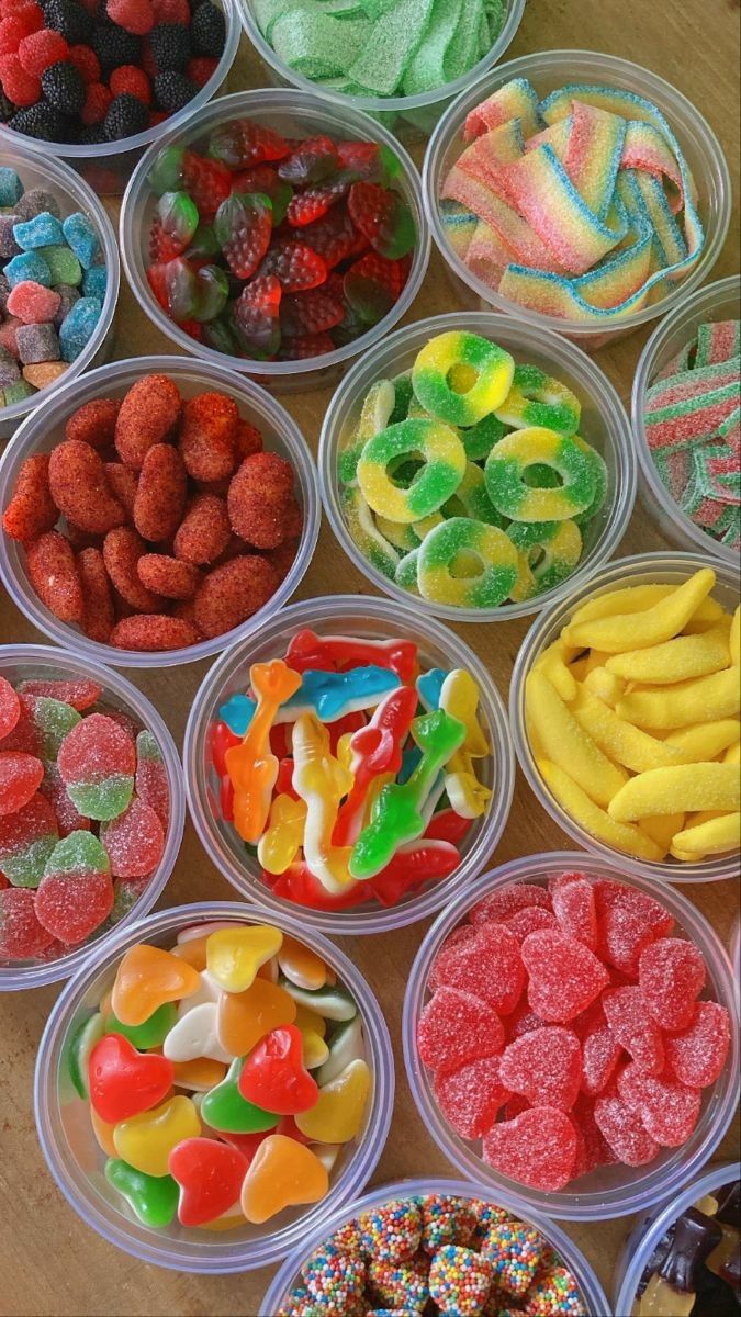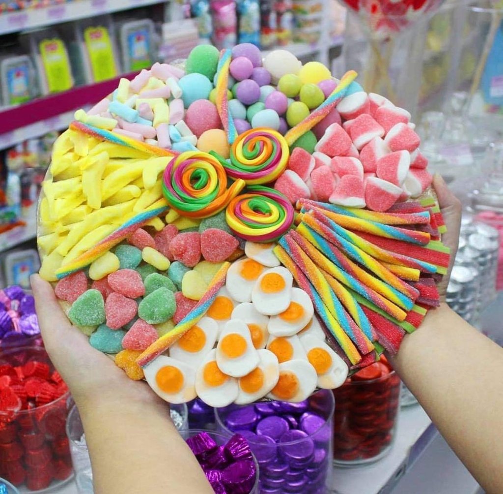 Es una tabla o bandeja donde se presentan de forma armoniosa y abundante una gran variedad de gomitas, jugando con los colores, las formas, las texturas y los sabores. Es una experiencia interactiva: tus invitados se acercan, señalan con el dedo, dudan, eligen, combinan... Es una conversación en sí misma. Es el centro de mesa que se roba todas las miradas (y las manos).